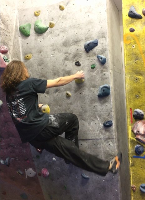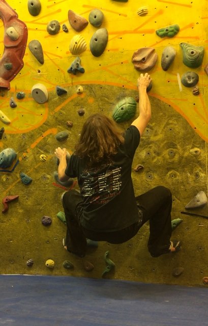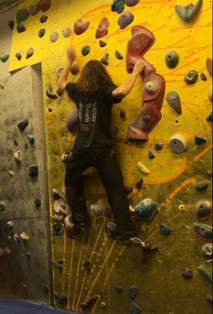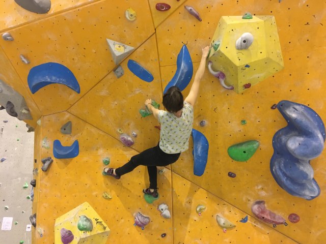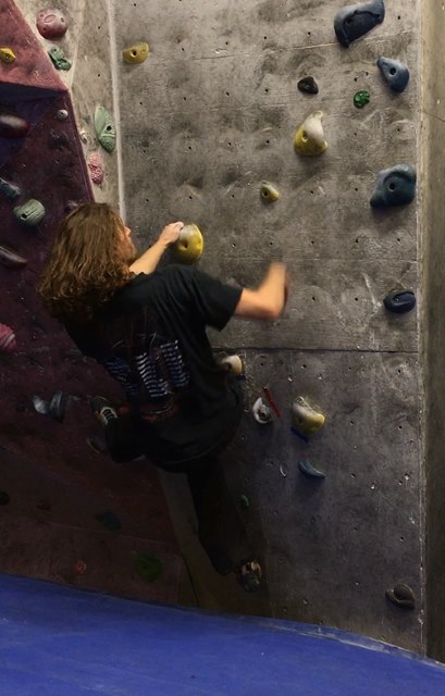 Naredi, ko si z isto roko in nogo v kontaktu s steno - nasprotno nogo pritisni ob steno za stabilnost, ko imaš odrivno nogo nizko